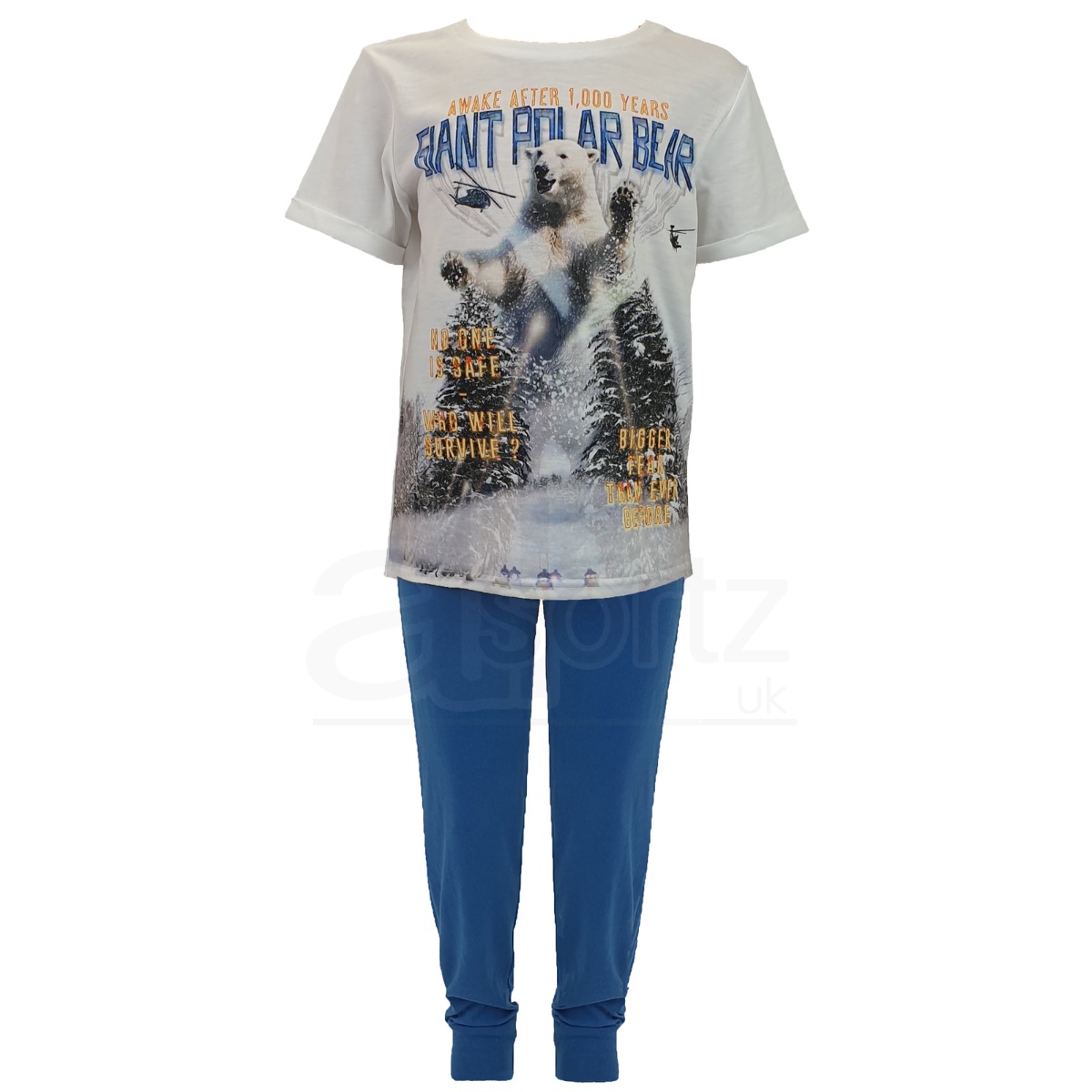 Childrens Blue & White Giant Polar Bear Print Pyjamas