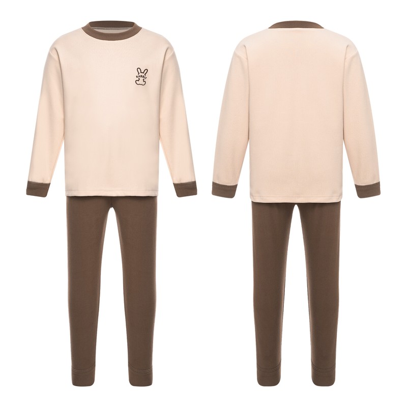 Round neck long sleeve T-shirt undershirt with rabbit print on the left chest. Pair with elastic waistband pants.